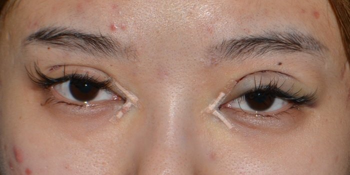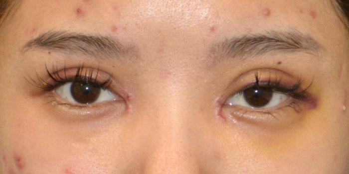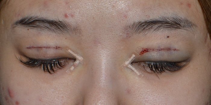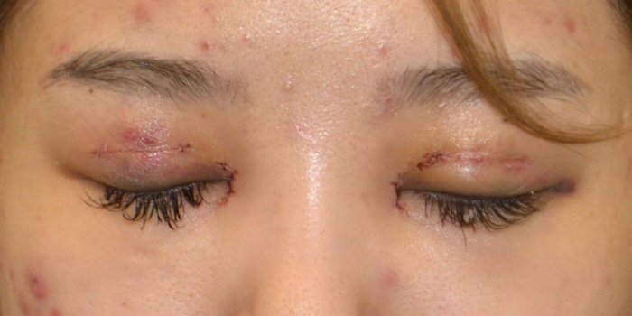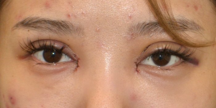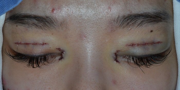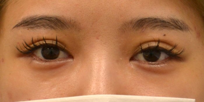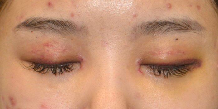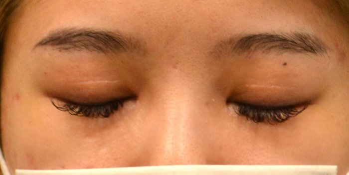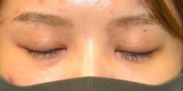 施術の副作用・リスク:腫れ、皮下出血、発赤、掻痒感、色素沈着、悪心、痛み、頭痛、発熱、痺れ、麻痺、知覚鈍麻、知覚過敏、異常知覚、異物感、違和感、左右差、感染、血腫、組織壊死、創部離開、アナフィラキシーショック、呼吸困難、二重幅の経年変化、二重の消失 、傷跡の盛り上がり・凹み・発赤、戻り、希望との差異、眉の形・位置の変化左右差