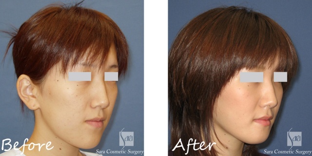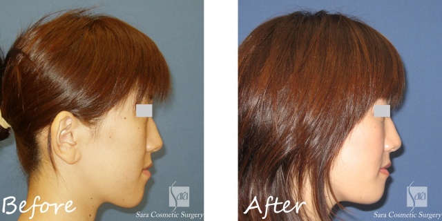 前方への突出は少ない方なので下部の骨切りをして、アゴを短くする手術を行っております。術前と術後の写真です。