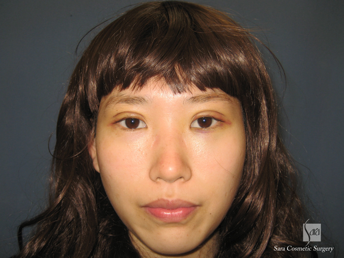 手術直後です。腫れで二重の巾は希望より広く見えますし、瞼も開きにくいにで眠たい目に見えます。
