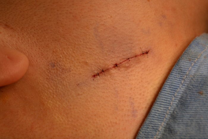 傷を縫って終了です