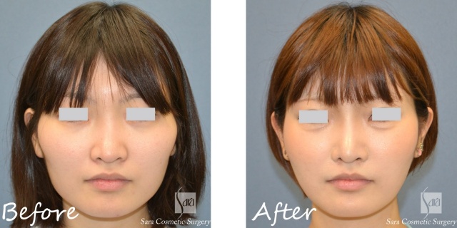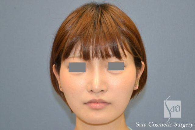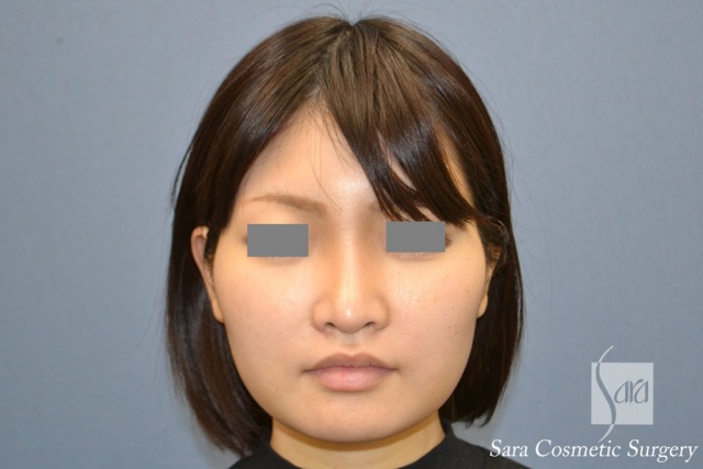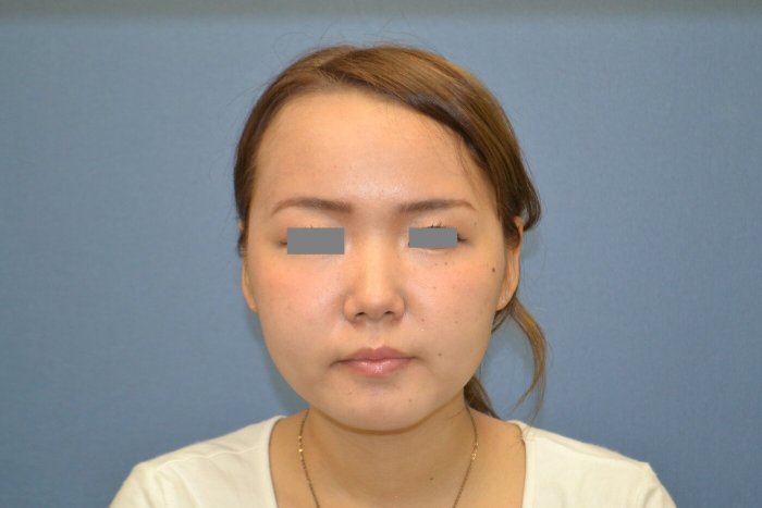 今年1月に掲載したアゴ切りのモニターさんです。その後頬骨削りもしました、その術後6ヶ月の写真です。術後の回復は順調で、アゴの輪郭は術後1ヶ月から比べ更にスッキリしてきました、もうほぼ落ち着いた状態です。頬骨削りは、頬骨の側面ではなくてちょうど目尻の下のあたりを削っています。正面像ではちょっと分かりづらいですね。