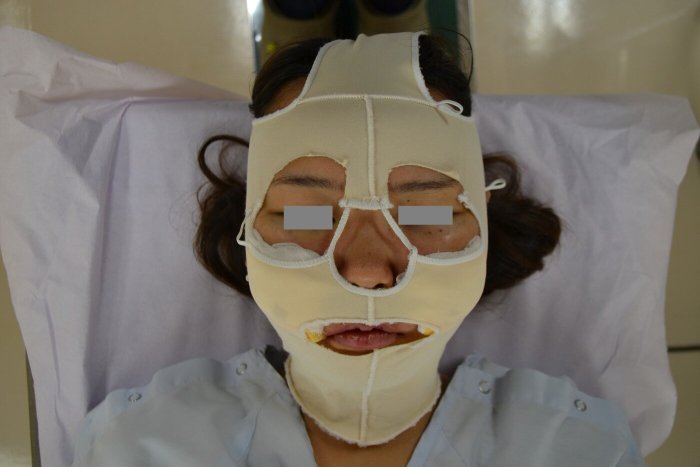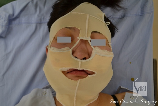 頬骨削りを行うと目出し帽のようなマスクになります24時間装着です
