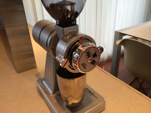 コーヒー豆はコーヒーミルで細挽きにします。細すぎるとフィルターの目に詰まるらしいです。