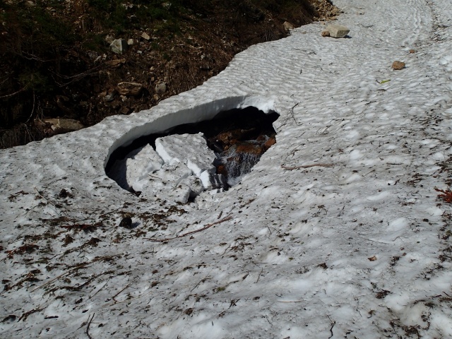 うわっ!雪の下は空洞(川)~((((((⊙₀⊙;;=