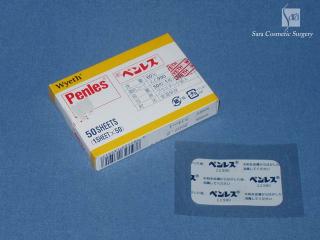 このチクッの痛みを和らげるためにペンレスを使用します。ペンレスは貼付局所麻酔剤、局所麻酔シール、局所麻酔テープ、リドカインテープとも呼びますが、所謂、皮膚に貼る麻酔です。用法は、ペンレスを注射予定部に約30分〜1時間前に貼付します。効果は個人差もありますが、十分効く人は針の穿刺時の痛みはほとんどなくなりますが、注入時の痛みは多少感じます。