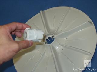 洗濯槽のローターです。中心のキャップをマイナスドライバで外します。