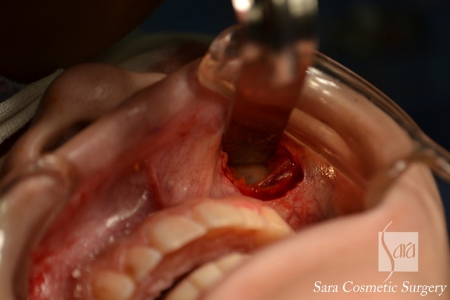 エラ削り(口外法)はエラの外側を約3~3.5cm切開して脂肪層、筋層を押分けて骨を露出します。