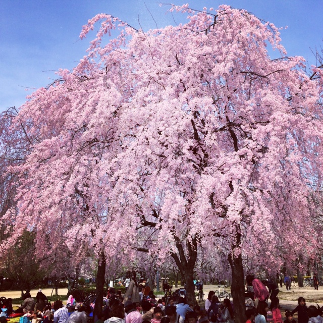 平日のお昼なのでママさん率が高いですね、特にこの3本のしだれ桜の下は人口密度高かったです。