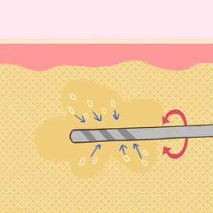 - スパイラルカット(渦巻き状)のカニューレ(吸引管)にコンピューター制御の反復回転運動を加え吸引管周囲の脂肪細胞を取り除きます。