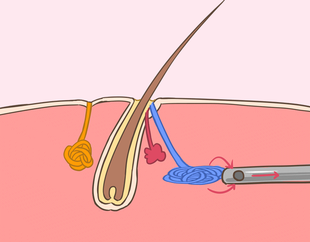 わきの下の有毛部の腕よりの際を1cm程度切開し、専用の吸引器具を挿入しアポクリン汗腺を中心に吸引除去します。